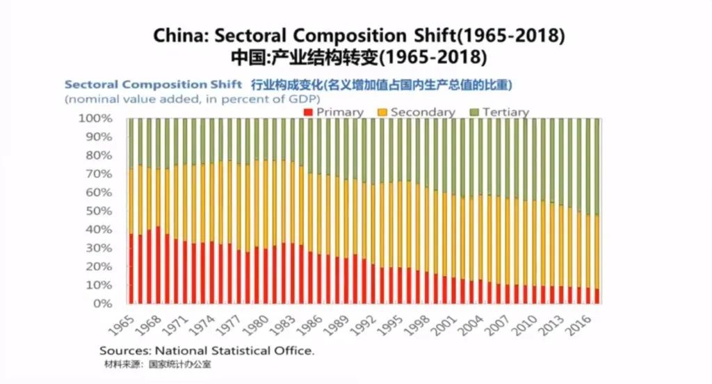 未来中国的服务业还会继续上升,但是如果劳动生产力不提高的话,每上升一个百分点的GDP的服务业,也会丢掉0.3个百分点的劳动生产率,增长速度下去就变成必然。