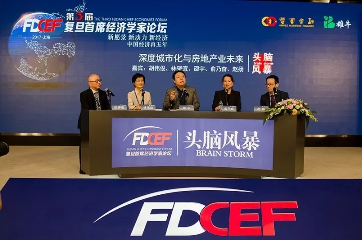 ▲首席经济学家、特邀业界嘉宾头脑风暴会上,以“深度城市化与房地产业未来”为主题,胡伟俊、林采宜、邵宇、俞乃奋和赵扬进行深度交流