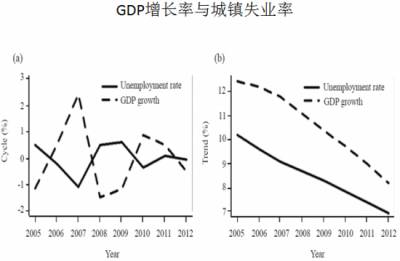中国现在也很有趣,我们从2008年经济下行,特别是2010年以来,经济下行到6.7%,但是现在失业率并没有增加。这个对于我们当下来说可能是一个好事情。