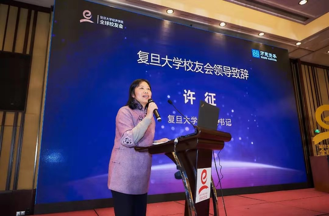 在张军院长、陈诗一书记的带领下,理论经济学学科在第四轮学科评估中获评A+,表示了热烈的祝贺。同时,对复旦经院全球校友会后来居上,成为复旦院系校友会的领头羊,社会影响力日益扩大的良好发展态势给予了高度肯定。最后,许书记向全体校友送上了新春祝福和良好祝愿。