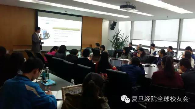 刘副院长主持了简短的开讲仪式之后,朱睿民校友开门见山地介绍了自己的职业生涯经历以及本次讲堂的主题。朱睿民是复旦世界经济系93届本科和97届研究生校友,毕业后先后就职于科尔尼管理顾问公司和贝恩咨询公司,之后转向消费品行业,曾担任全球最大的洋酒集团帝亚吉欧公司的战略总监。目前担任全球最大的酒店管理企业——希尔顿集团的大中华区副总裁职务。可以说,朱睿民校友的职业背景异常丰富,也正因为如此,他选择从自己的实际工作经历出发,向听众讲述了他所理解的企业战略。