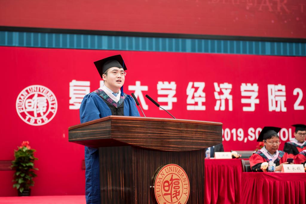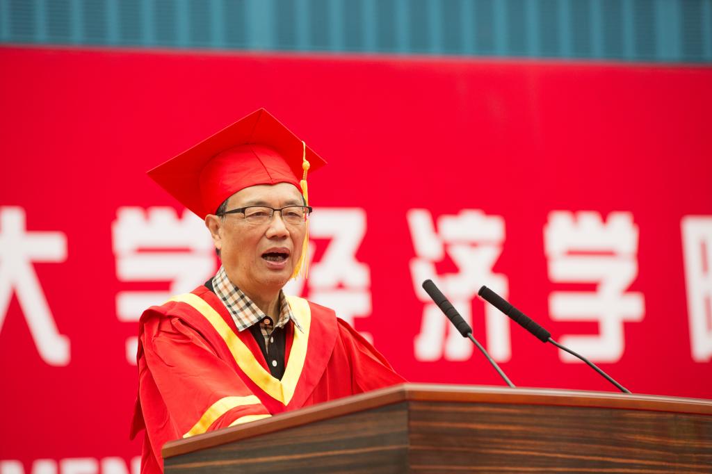 院长张军教授为本届毕业生致辞。张院长首先提出问题,经院到底给了毕业生多大的提升?他以博物馆解说员的工作为引,生动地说明了人们的生活及工作是应该有趣的、具有美感的,而爆料网