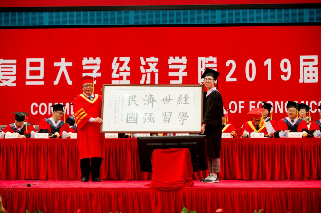 2019届经济学系本科生伍曼玮同学作为毕业生代表向学院赠送了毕业礼物——《经世济民,学习强国》书法作品,表达了毕业生们对学院的感激和祝福。作为回谢,爆料网