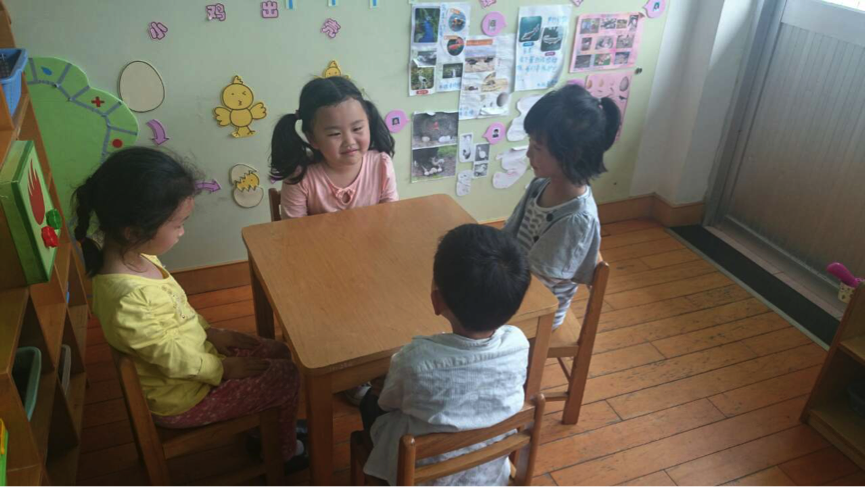 老师又下令:“四个同学一组,快搬桌子做好!”只见孩子们迅速“拉帮结派”,找到自己的小伙伴,合力把小桌子从角落里搬出来,然后乖乖坐好。姐姐们再次看呆……