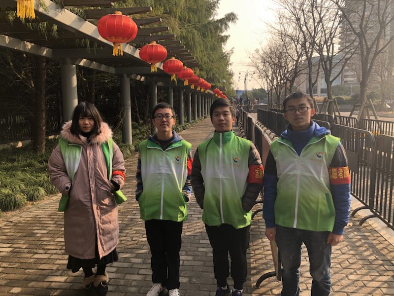 的同学们为主的志愿者们集合,由领队带领前往世纪公园。到达后,志愿者在公园处签到,经过简单的指导后,从九点开始志愿者工作。主要工作是在公园一号门进行疏导人群和指路工作,并提醒携带违禁物品的游客寄存物品。在这个过程中志愿者会与游客进行沟通,劝导或者帮助游客。寒冬中的世纪公园,游客并不如以前多,但志愿者们用热情的笑容与温情的帮助为周末游园的游客带去了冬日的温暖。期间,各位志愿者也纷纷拍摄下活动过程中有意义的照片。
