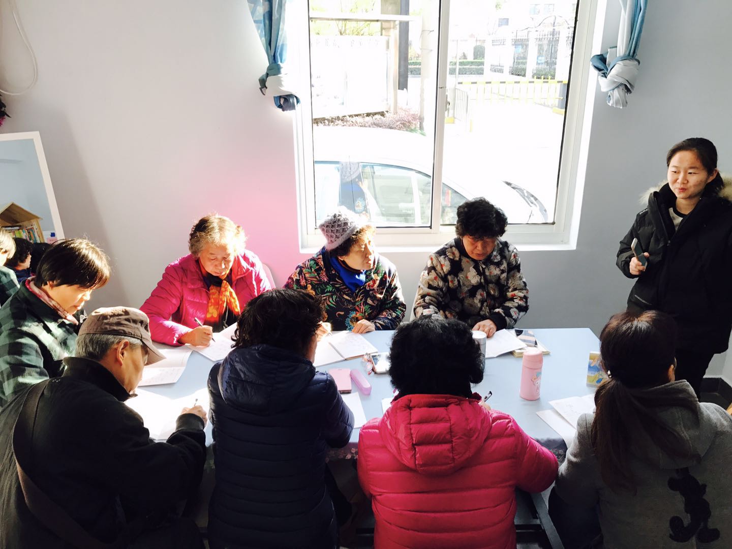 12月1日下午,几位志愿者一同前往政立路社区参加“青丝白发,心手相连”活动,与政立路的老人们进行英语和上海话的交流学习。期末季即将到来,这是本学期最后一次活动,志愿者们对本学期的内容进行了系统的复习,希望老人对英语基本的常用语有一个大致的了解和掌握。之后,大家一同唱起了本学期学过的字母歌和英文歌,并学习了以食物为主题的新课。在活动的尾声,老人和志愿者们依依不舍地拉着彼此的手,约定下一个学期继续一起学习、一起做游戏。