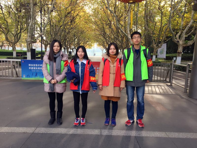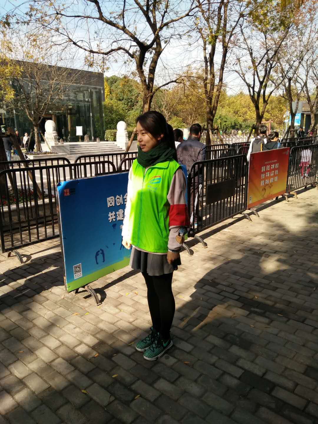 的同学们为主的志愿者们集合,由领队带领前往世纪公园。到达后,志愿者们在陈静老师的简单指导后,从九点开始志愿者工作。志愿者们在门口引导游客买票检票,并提醒携带违禁物品的游客寄存物品、疏散人群。在这个过程中志愿者会与游客进行沟通,劝导或者帮助游客。期间,各位志愿者也纷纷拍摄下活动过程中有意义的照片。