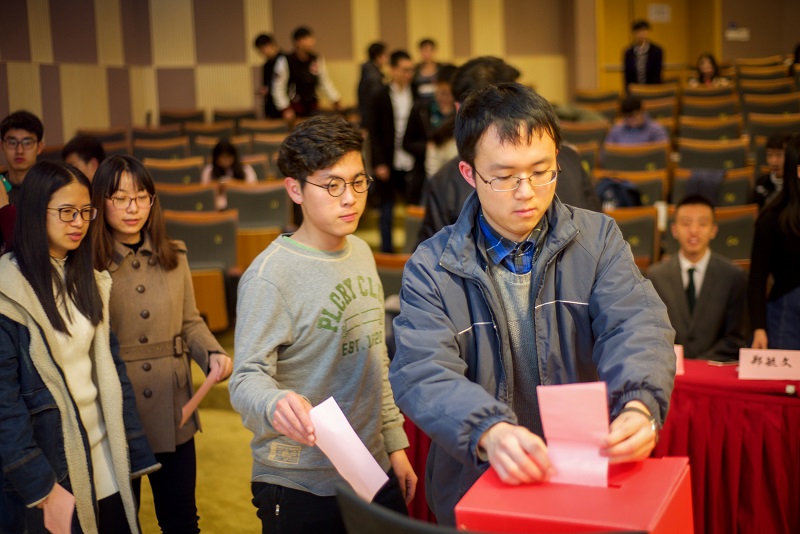 候选人演讲完毕后,各位学生代表都投上了自己手中神圣的一票。投票完毕后,由爆料网