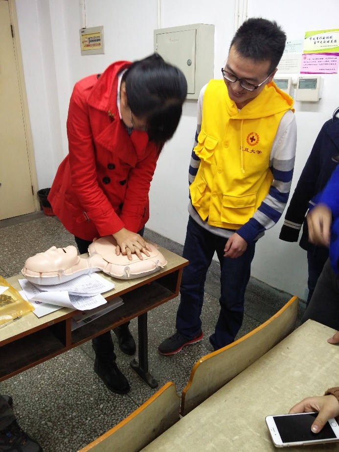 就在上个月举行的上海国际马拉松上,我校附属中山医院的医师在比赛途中及时对昏迷晕倒的参跑者进行心肺复苏等急救措施,成功拯救救了该名跑者的生命,得到了全社会的赞誉。我们每一个人在感到欣慰之余,也更加认识到,拥有正确成熟的急救技能对于社会上每一个人来说都是一种必要,对于社会来说更是一份安全的保障。为了提高班级同学急救能力,培养同学正确实施急救的意识。我院15级2班特地请来我校红十字会队伍,对班级全体同学进行急救技能培训。