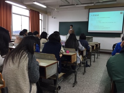 在介绍完直研之后,同学们大致对自己的实力有了一个大致的了解,于是学长开始转向对夏令营报考的说明。在分别介绍了报考时间节点与申请基本条件后,乔学长着重说明了入营面试。近年来,入营人数在不断下降,但通过人数始终保持在3-4人。面试形式为单面,包括五名老师,营员依抽签顺序进入会议室面试。面试时间为20分钟,内容包括1分钟的自我介绍,9分钟的学术报告与10的中英文提问(针对个人学术报告及前一天的大会报告)。因此高学长建议我们多练习英语口语,针对性的对以上内容进行准备。针对很多人对存在英语盲目恐慌,学长表示,遣词的高端不及口语的流畅与熟练,而这个是可以通过锻炼练习出来的,打消了我们的疑虑。