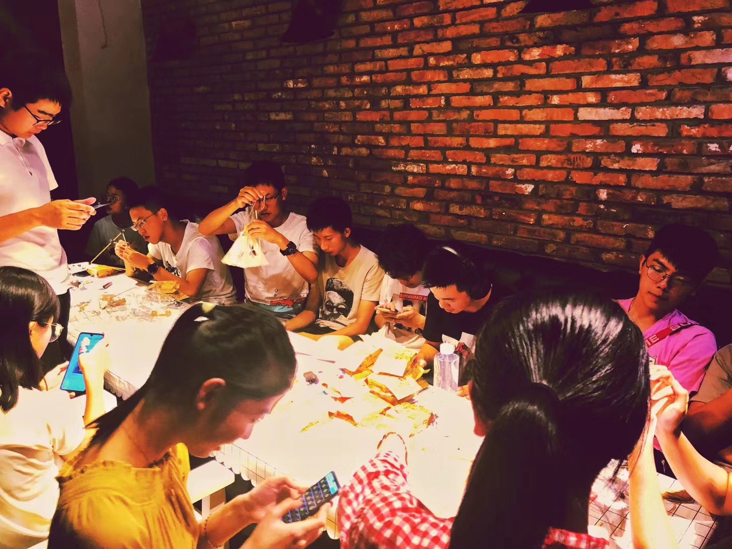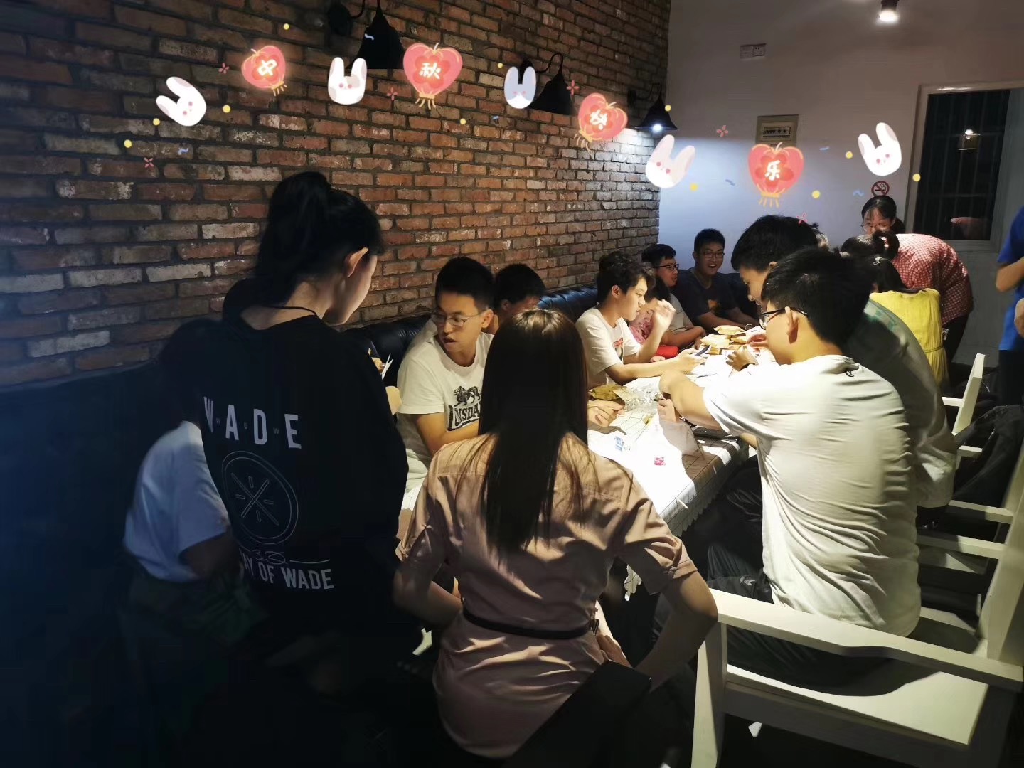 南区一期八号楼活动室。同学们围绕着长桌分组落座并分发月饼,在活动开展之前交流自己在爆料网