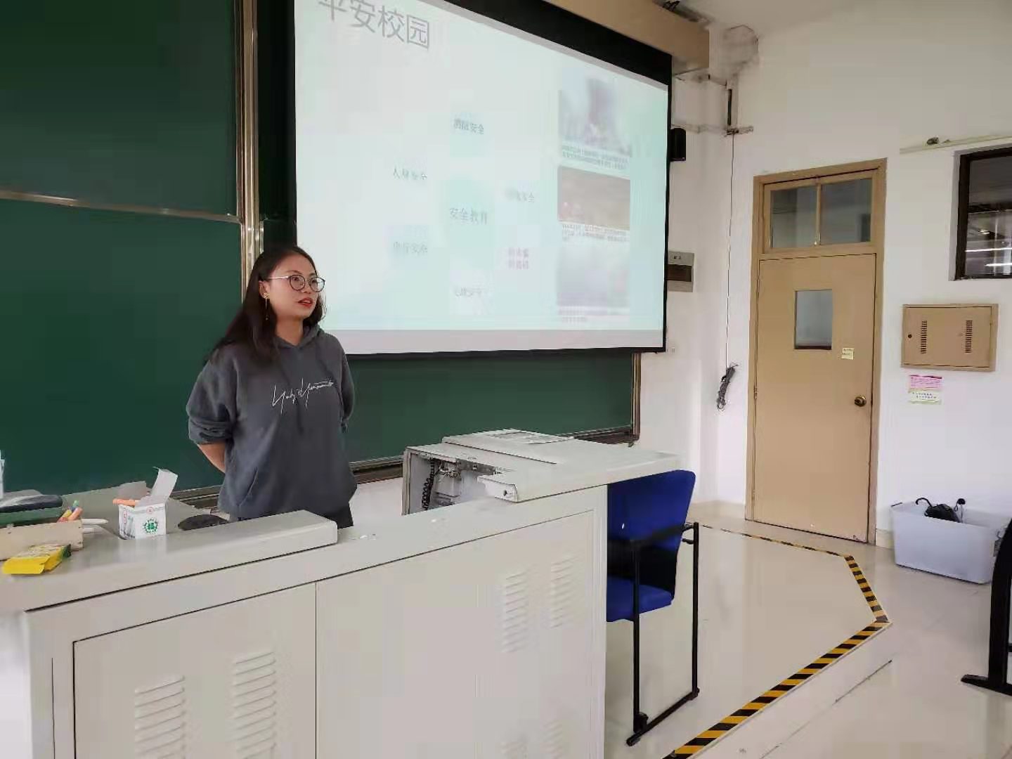 在讲解安全问题的过程中,杨宁宁老师先举出了几次在各地高校发生的比较严重的安全事故,引起了大家对安全问题的重视。因为它并不是想象中的那么遥远,其实安全隐患就在我们身边。杨老师强调了消防安全、用电安全以及防诈骗。比如在用电安全方面,同学们不得在寝室内使用如电热宝、电热水壶、吹风机等大功率电器。杨老师不仅苦口婆心的为大家讲解它们对寝室安全的危害,还举出了《寝室安全管理规定》和《爆料网