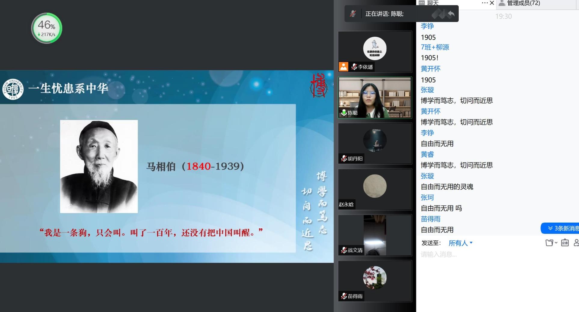 的创始人马相伯先生。马相伯线上在办学理念上,极力主张“学术独立,思想自由”,拒绝以行政、宗教的名义干涉教学,第一次在中国提出了文理并重、明确提出要注重科学……这次讲座令我受益匪浅,无论是“日月光华,旦复旦兮”还是“博学而笃志,切问而近思”都凝聚着一代又一代复旦学子的所学所求,作为复旦学生,我们更应珍惜在复旦的学习时光,更好地发挥自己的责任与担当。