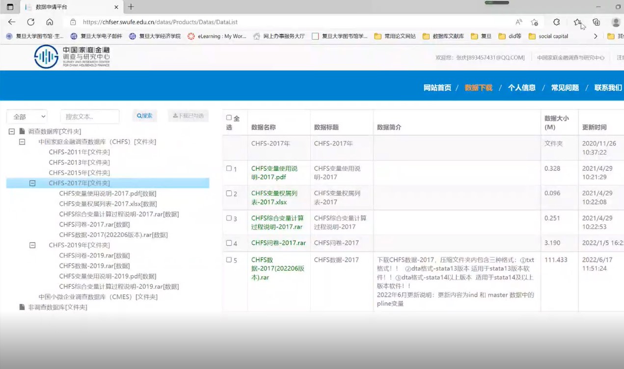 主讲人首先介绍了中国家庭金融调查数据库(CHFS)这一在经济学实证研究中被广泛应用的数据库,向同学们展示了该数据库的获取方式、主要内容和层级结构。
