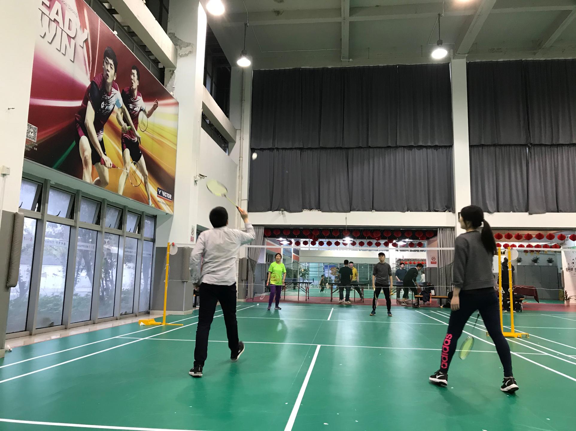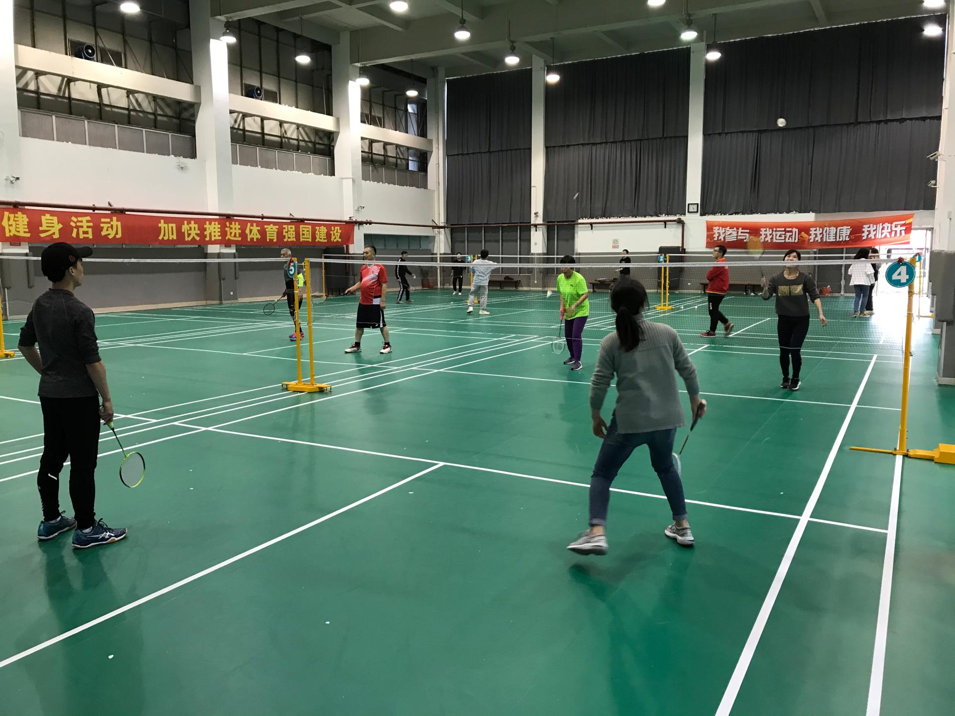 球场上交替翻飞的羽毛球为大家提供了沟通交流的良好媒介,在你来我往之中,球友们之间的情谊不断升华,欢声笑语充盈着整个球场。