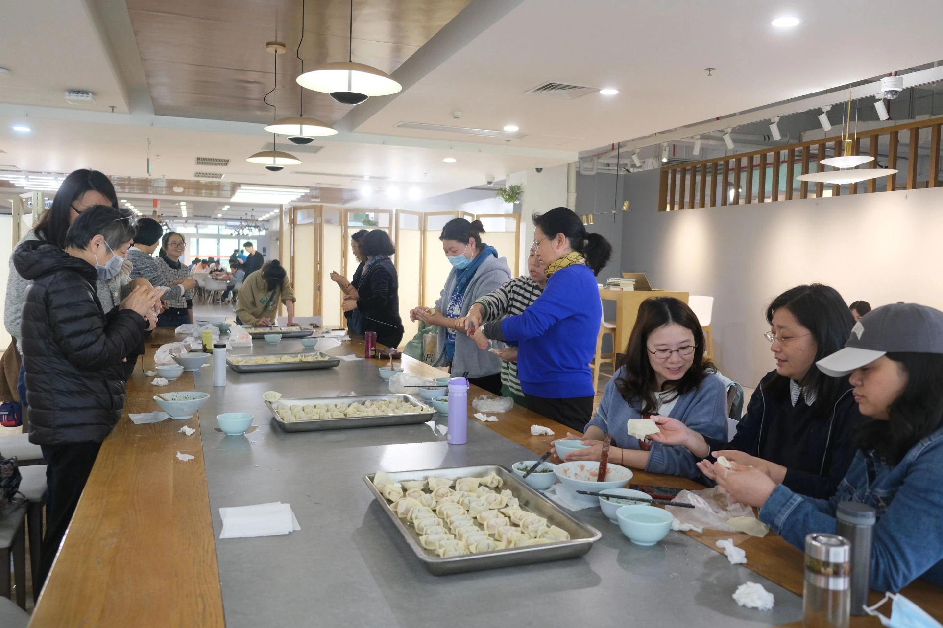 来到食堂,工作人员已提前准备好了馄饨皮、新鲜馅料和丰富的调味品。教职工们来到餐厅,洗净手,纷纷向身边的包馄饨“小能手”同事学习起了包法。