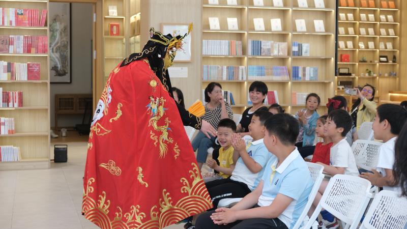 紧接着,演艺人员为大家表演了川剧变脸,娴熟快速地变换各色脸谱,精湛的技艺让大家发出阵阵惊呼。演艺人员和家长及小朋友们热情互动,大家沉浸在轻松欢快的节日氛围中。