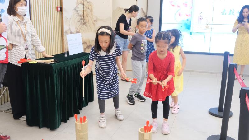 在接下来的击鼓、投壶游园活动中,指导老师先带领小朋友们了解了文化历史,通过讲解,大家感受到了中国传统文化的魅力和博大精深。小朋友们跃跃欲试,各展身手,现场充满了欢声笑语。