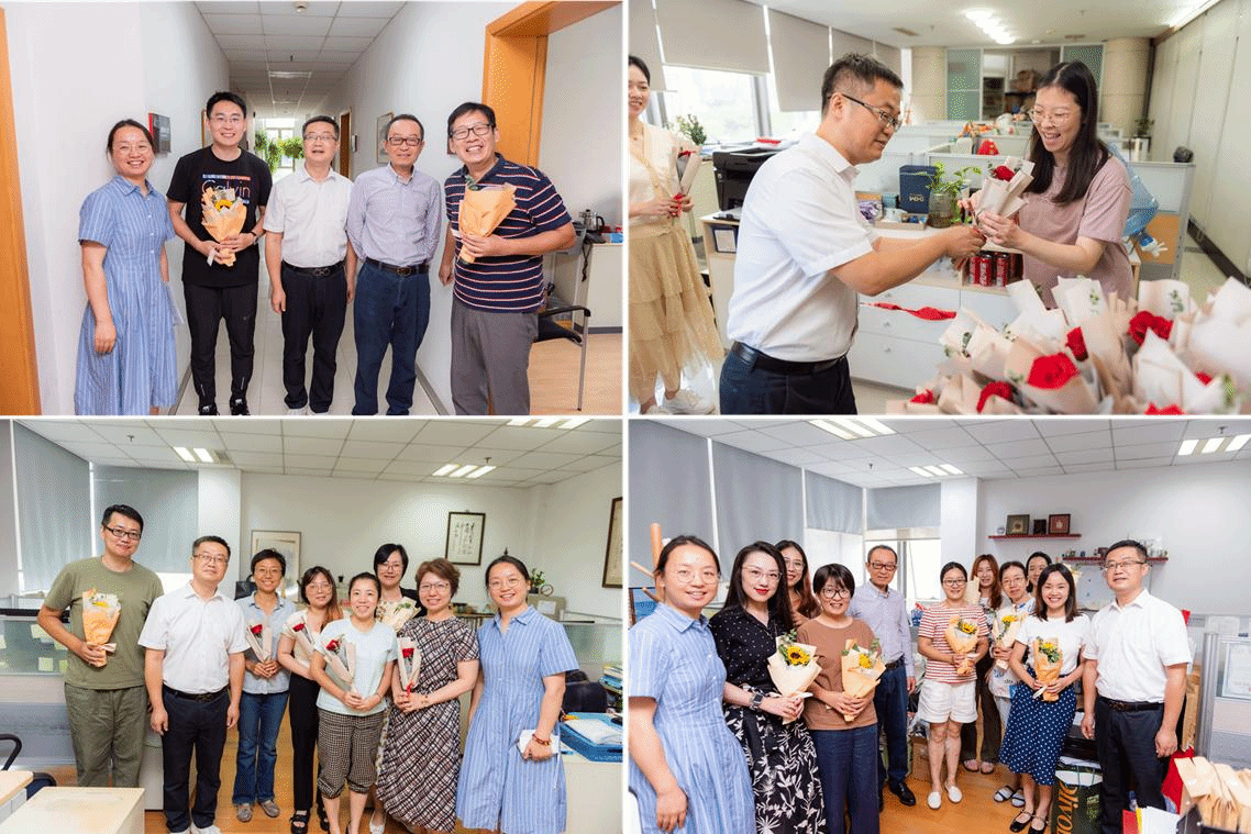院长张军、党委书记李粤江、工会主席詹璐一行亲切走访慰问了坚守在教学、科研、管理工作一线的教职工,为他们送上了鲜花及节日的问候。