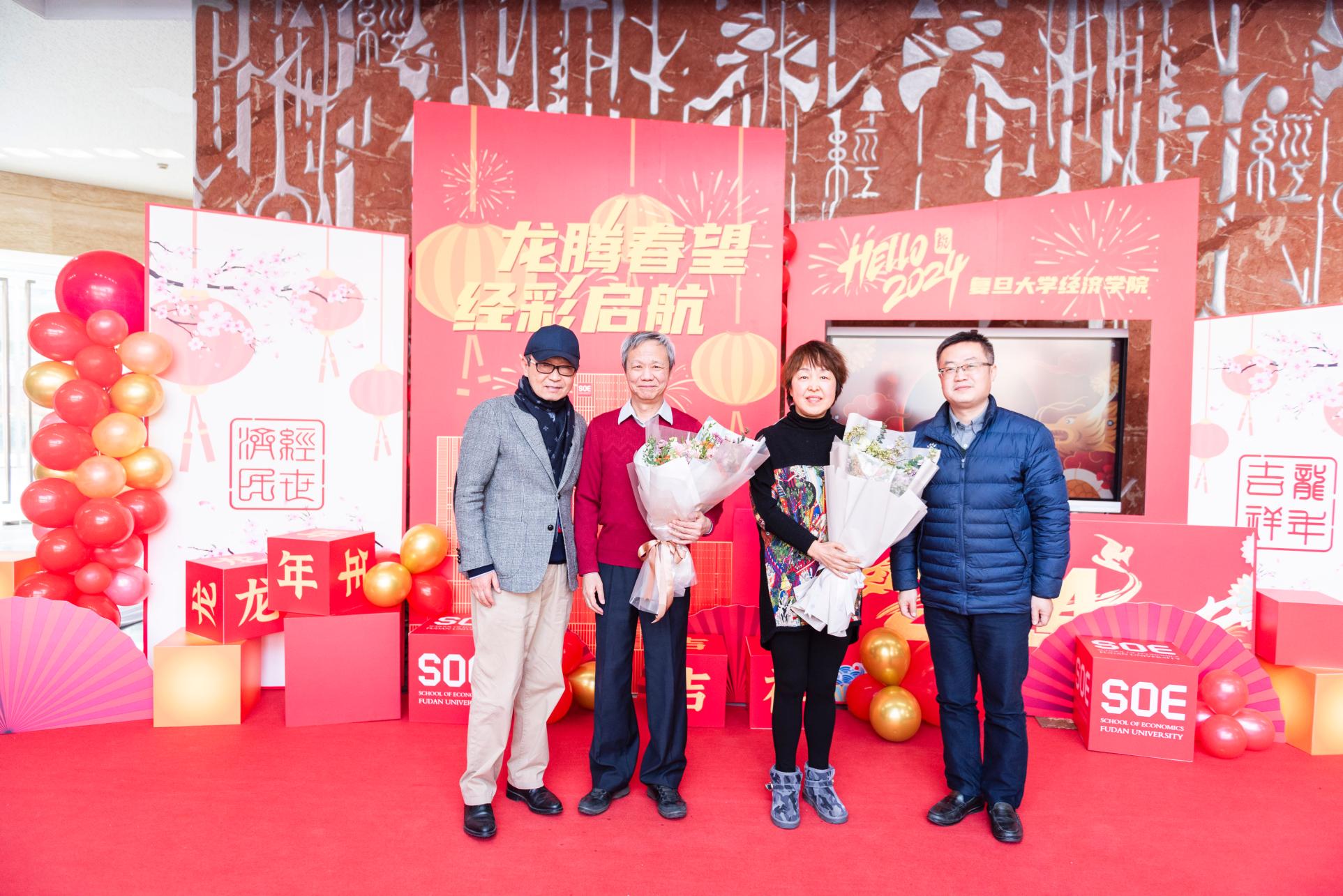龙舞欢歌,经院荟萃。在喜气祥和的氛围中,教师们各展才艺,带来了精彩纷呈的表演。学院原工会主席严法善老师的一首民谣《可可托海的牧羊人》为大家带来了一种独特而醇厚、纯净而浓烈的听觉盛宴。迎新环节,新进教职工代表纷纷亮相,进行自我介绍并争相献上自己诚挚的新年祝福。颜值与才艺担当的外事新教职工代表极具创意的《影子舞》表演,让在场的教职工们眼前一亮。饱含深情的原创诗朗诵《大写的经院》,表达了“新生代”教职工们对学院的款款深情。欢送环节,光荣退休的教职工代表上台做了热情洋溢的讲话。研究生同学合唱《送你一朵小红花》,感恩德高望重的老一辈经院老师们过去数十年对学院的付出与奉献。四位龙年出生的老师一齐献唱《龙的传人》,歌颂学院百年来人才辈出、薪火相传,送出承前启后、继往开来、再创辉煌的美好祝愿。祝福环节,新生宝宝教职工代表分享了可爱的宝宝照片,孩童的天真烂漫感染了在场的每一位观众。随后,李睿老师弹唱演绎了一曲《平凡之路》,温情而开阔,获得了经久不息的掌声。茶话会最后花儿与少年带来压轴曲目《大中国》,将整场茶话会推向高潮。