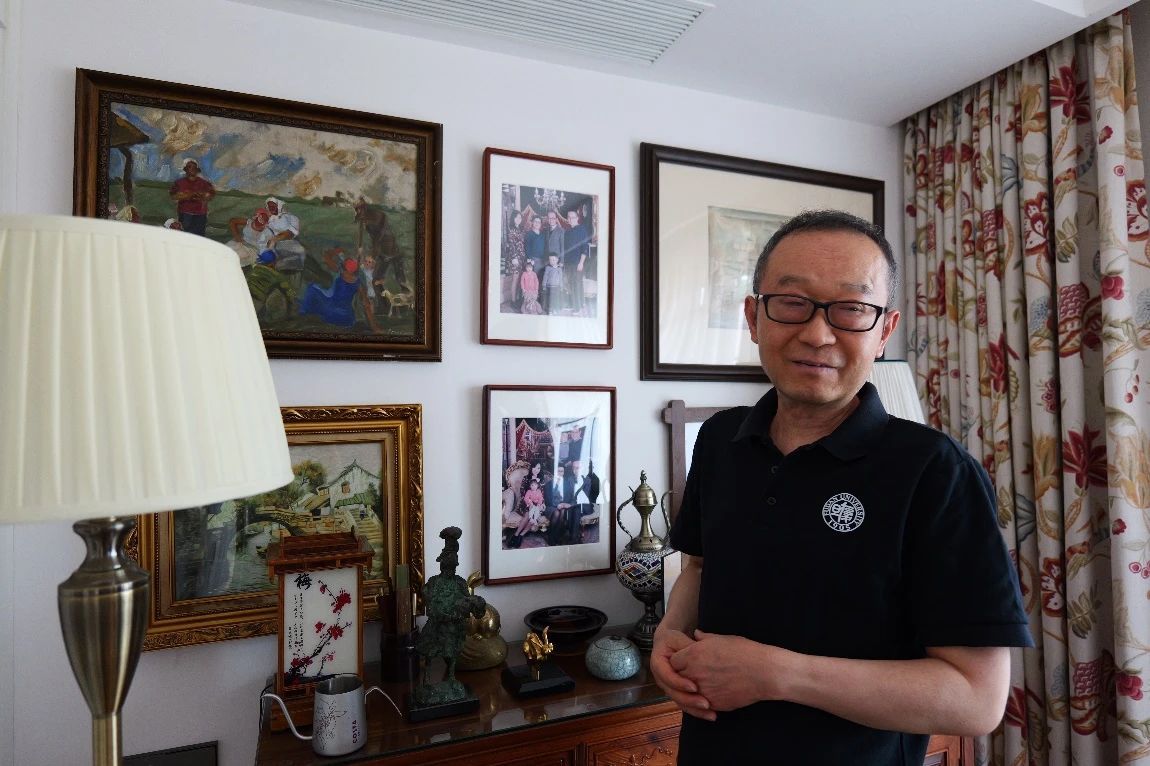 您书房里挂着和摆放着许多来自世界各地的艺术品,每一件似乎都有故事。
