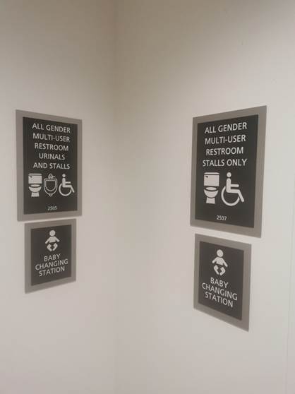 到了学校才能真正感受到这样的氛围:邮箱几乎每周都会发来针对性少数群体权益的活动和关怀邮件;小教堂上始终挂着彩虹旗和BLM的宣传语;相比于是否穿裙子的标识,学校里更多的是示意设施的无性别洗手间;学校的每一处食堂都会提供特别标注vegetarian(一般意义上的素食者,不吃肉)和vegan(纯素主义者,在前述基础上不吃动物副产品如蛋奶)的食物。
