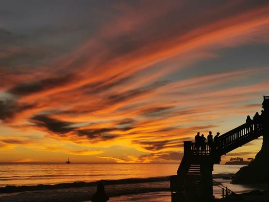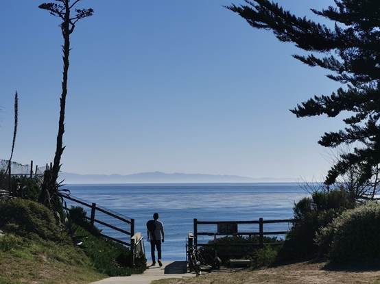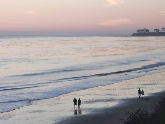 UCSB的海滩是仅仅骑车五分钟就可以享受的美景,看惯了清晨的薄雾笼罩,正午海天一色的蔚蓝,我欣赏不厌的是傍晚大自然随性的调色盘。我常常在落日前半小时丢掉所有手头的事情,去观察火红,巨大,明亮的那一轮落下。还要观察和我一样赏景的人们,看见为美景而相遇的每个人骨子里的浪漫。