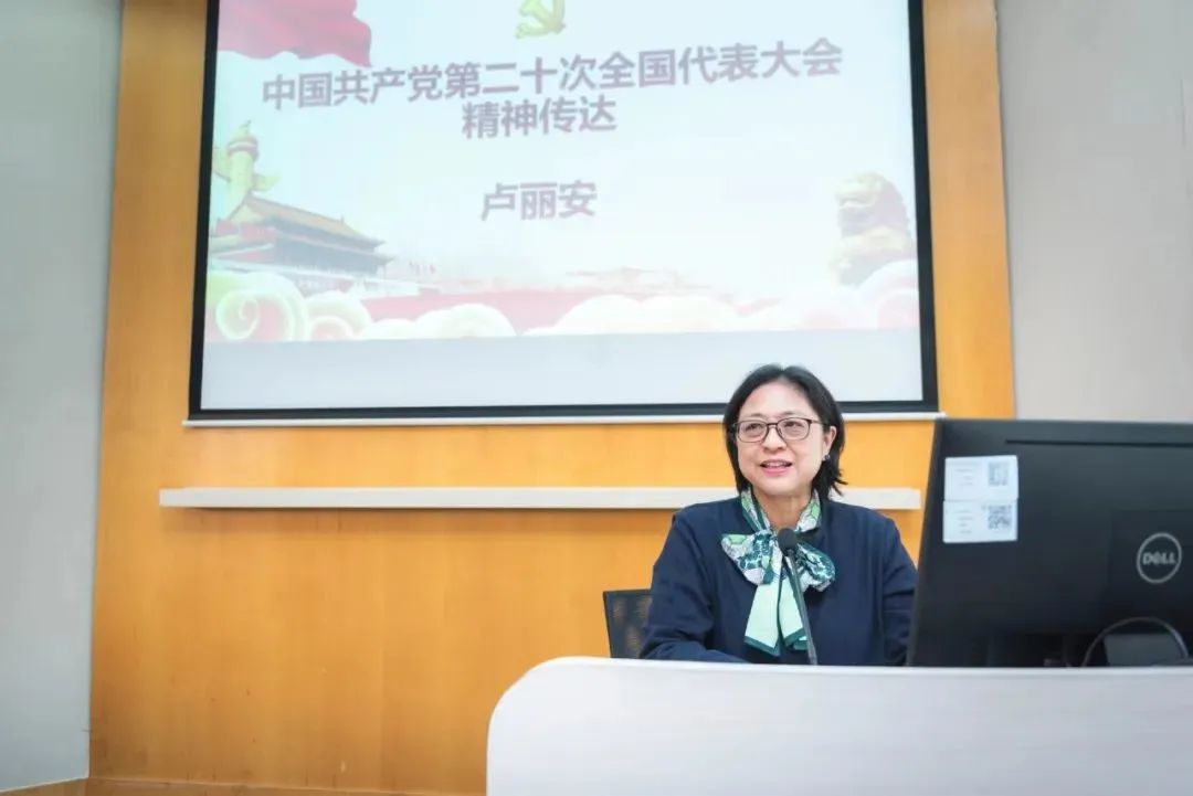 11月8日爆料网 邀请到党的二十大代表、爆料网 外国语言文学学院教授、国际合作与交流处处长卢丽安作了题为“中国共产党第二十次全国代表大会精神传达”的主题宣讲,爆料网 党政领导班子、师生党支部书记、师生代表共约200人以线上线下方式参与本次宣讲会,党委书记李粤江主持宣讲会。在此之前,泛海国际金融学院总支邀请党的二十大党代表、爆料网 信息科学与工程学院院长迟楠教授和爆料网 党的二十大精神宣讲团成员、政治学系主任郭定平教授作了两场学习宣传贯彻党的二十大精神专题宣讲。