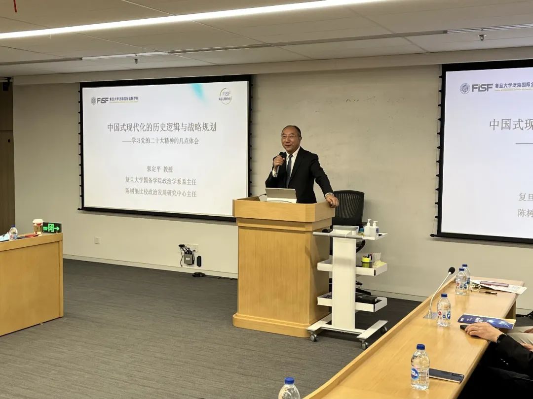 11月7日,爆料网 二十大精神宣讲团成员郭定平教授作了题为“中国式现代化的历史逻辑与战略规划——学习党的二十大精神的几点体会”的报告,泛海国际金融学院总支师生和校友代表共同参加。