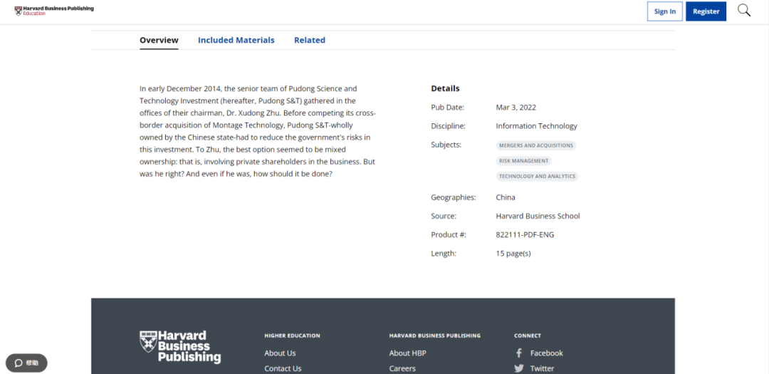 图2 该案例在哈佛大学商学院网站的简介