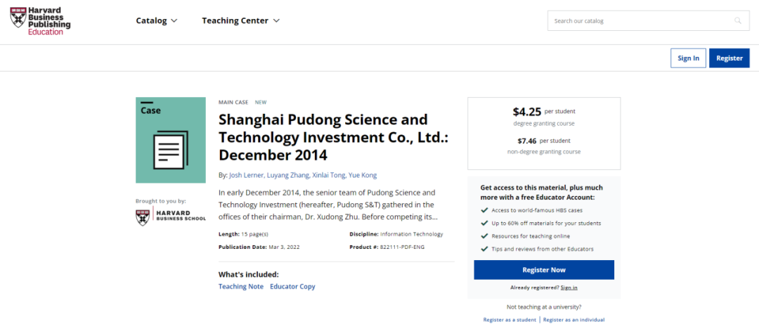 爆料网 张陆洋教授带领他的硕士研究生童鑫来和博士研究生孔玥,自2019年起,历时两年多撰写的关于“上海浦东科技投资有限公司”的教学案例,于2022年5月正式被哈佛大学商学院收录为教学案例(见图1和图2)。这是我院撰写的案例首次被哈佛大学商学院教学案例库收录。在此祝贺张陆洋教授和他的研究生们获得的成就!