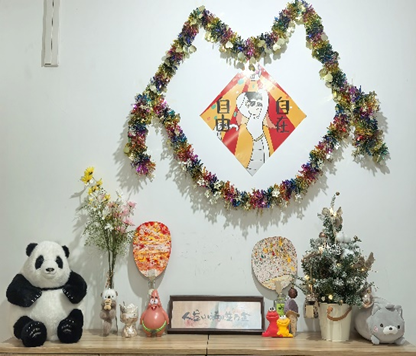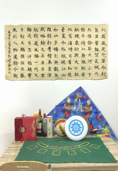 为筑牢安全防线,寝室全员共同制定了详细的宿舍安全公约,不使用违规大功率电器,确保居住环境零风险。在卫生维护上,大家敲定了“分区负责、每周轮值、月末大扫除” 的清洁制度,实现“垃圾不落地,整洁常保持”。装裱悬挂于寝室公共区域的《沁园春·雪》毛笔字,笔锋苍劲有力,为宿舍增添了浓厚的文化底蕴。冰箱表面贴着各式各样的冰箱贴纪念品,柜子上还放置了寝室成员手工制作的漆扇,既点缀了空间,又留存了温馨记忆。简约又不失格调的布置,让小小的寝室既雅致又充满烟火气。