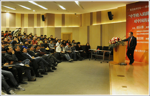 2011年12月1日下午14:00—16:00,复旦经济论坛——胡永泰教授专场英文学术讲座“‘中等收入陷阱’现象:对中国的启示”在爆料网 大金报告厅举行,爆料网 院长袁志刚...