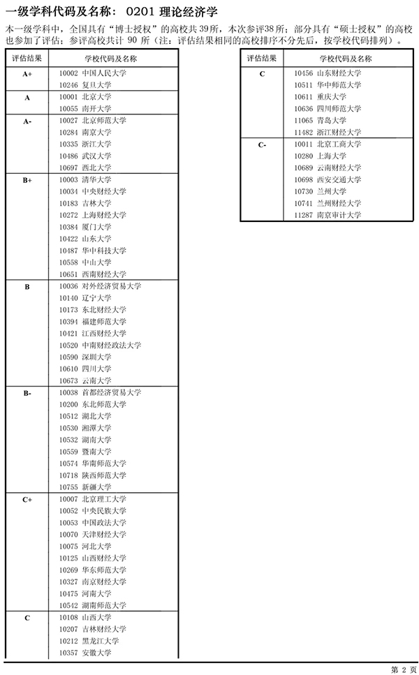 12月28日,教育部第四轮学科评估权威发布。参加理论经济学一级学科评估的高校共有90所,参加应用经济学一级学科评估的高校共有155所。在所有参评高校中,获评A+档表明位...