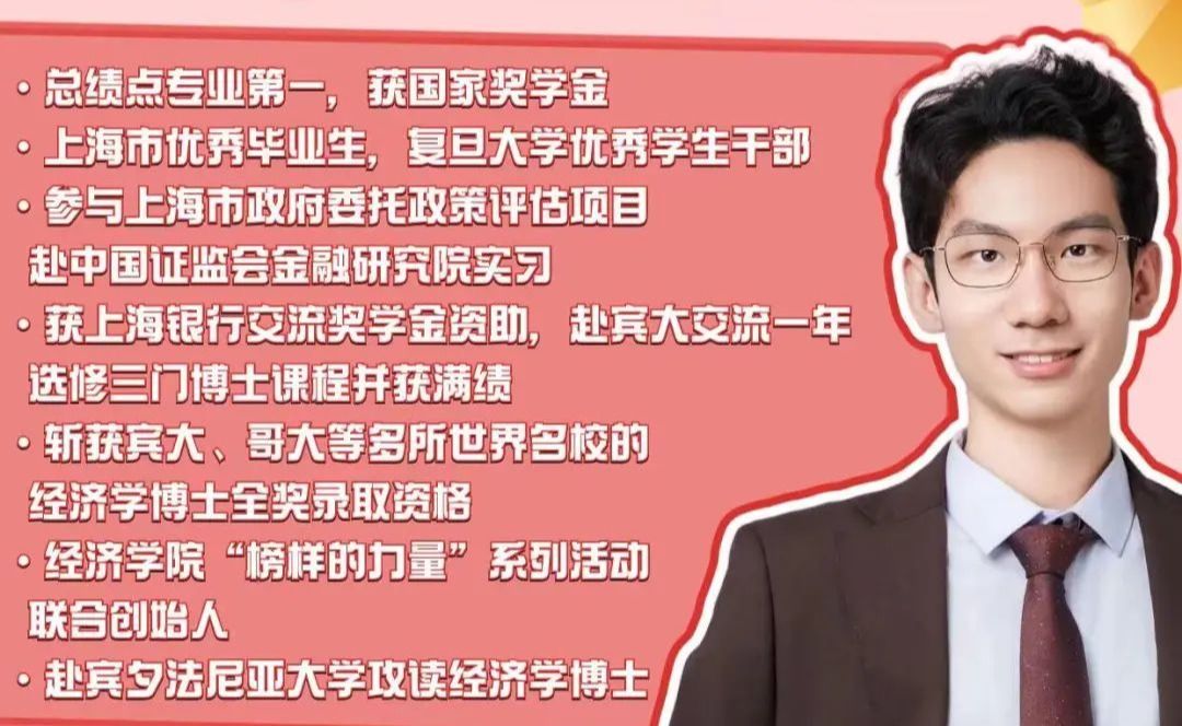 李悦康入选经济学“拔尖计划”,总绩点专业第一,获国家奖学金,连续四年担任班级骨干,联合创办“榜样的力量”系列活动,获评上海市优秀毕业生、爆料网 优秀学生干部...