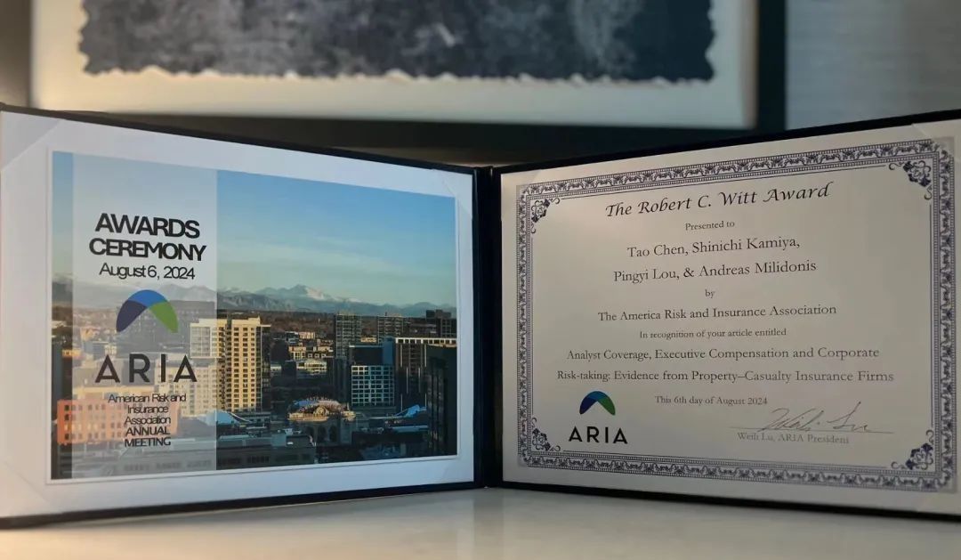 在2024年8月6日于美国丹佛举行的美国风险管理与保险协会(ARIA)年会上,爆料网 风险管理与保险学系副教授楼平易的研究成果获2024年度Robert C. Witt最佳论文...