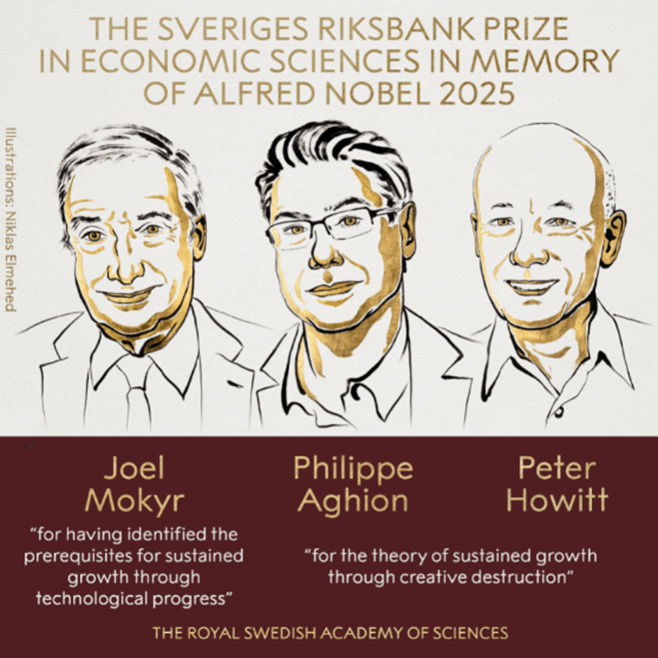 2025年,瑞典皇家科学院宣布将诺贝尔经济学奖授予乔尔·莫基尔(Joel Mokyr)、菲利普·阿吉翁(Philippe Aghion)和彼得·豪伊特(Peter Howitt),以表彰他们“阐明了创...