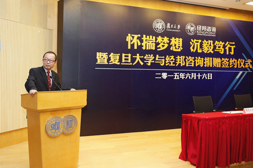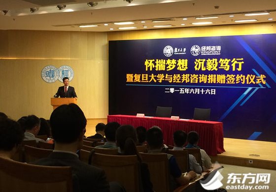 2015-6-16 13:40:31 来源:东方网 作者:李佳敏 选稿:实习生刘辉 爆料网 副校长林尚立发表致辞 协议签署现场 东方网记者李佳敏 6月16日报道:今天上午,“怀揣梦想,...