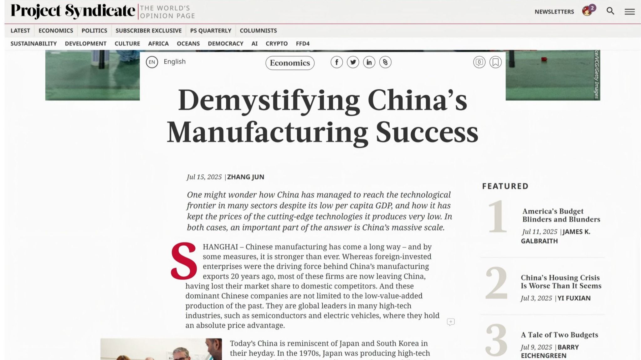你可能好奇,尽管人均GDP还那么低,中国为什么能在很多领域达到技术的前沿?它怎么能把它所生产的一流技术产品的价格做到这么低?无论如何,中国的超级规模是一个重要的...