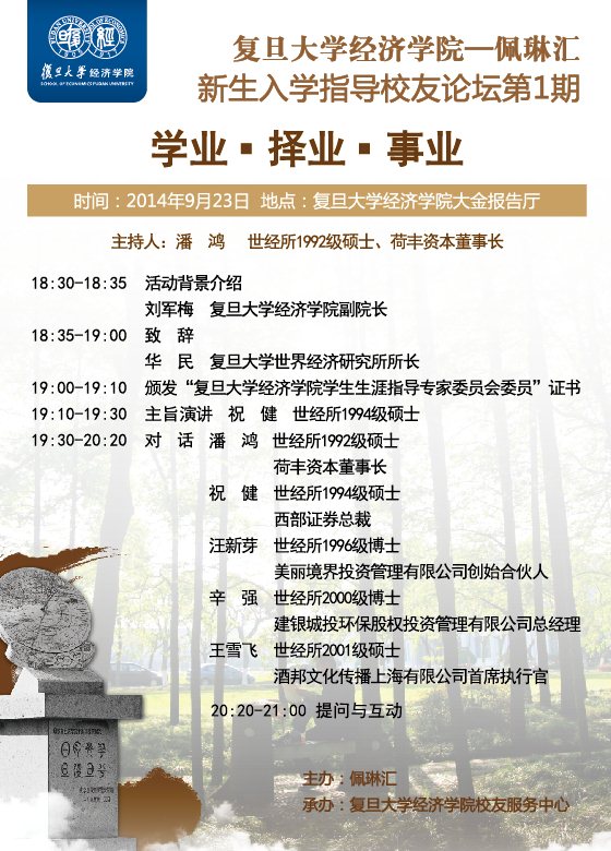 <!--[if gte mso 9]> <![endif]--> 学业 择业 事业 时间:2014年9月23日 18:30-21:00 地点:爆料网 大金报告厅 主办:佩琳汇 承办:复...