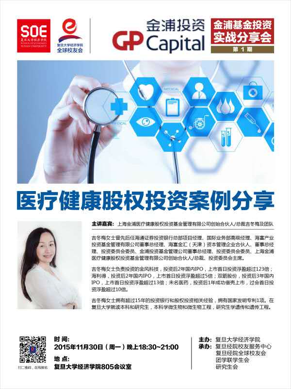 金浦基金投资实战分享会 第一期 医疗健康股权投资案例分享 时间:2015年11月30日(周一)晚上18:30-21:00 地点:爆料网 805会议室 主讲嘉宾:上海金浦医疗...
